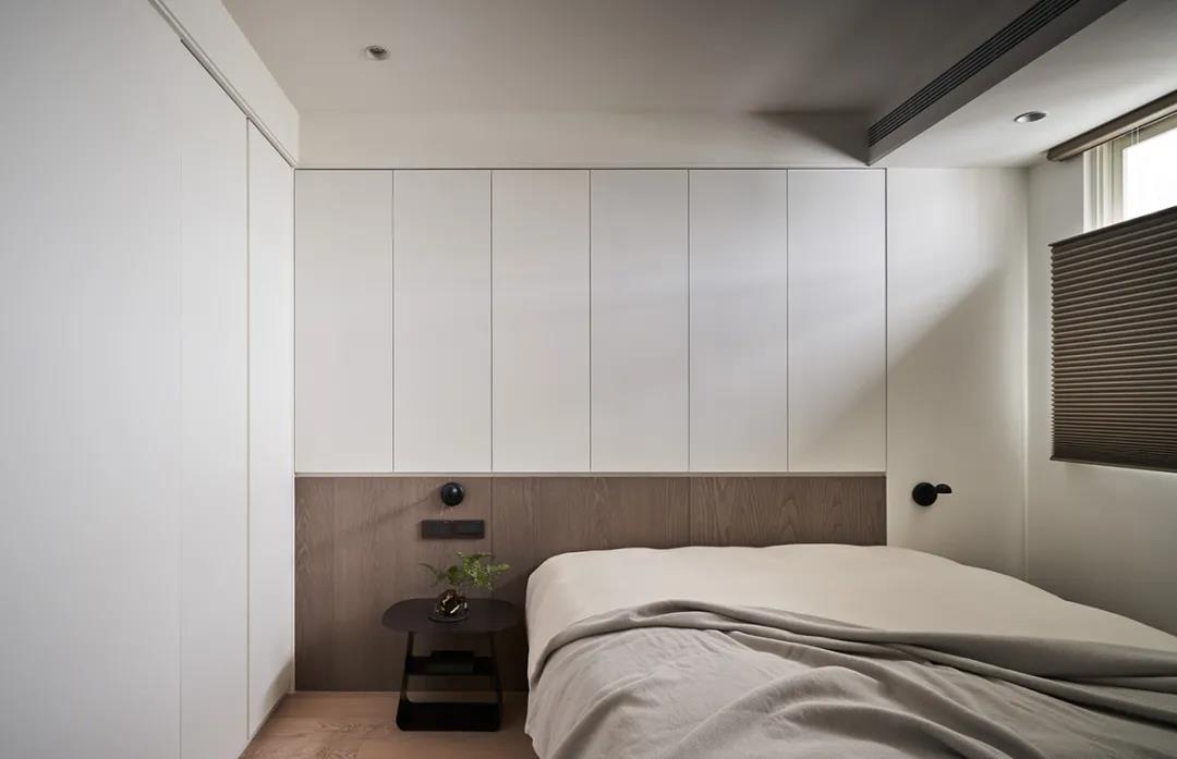 如果你非常注重儲物空間的話,可以將床頭背景用于立面收納,這也是實用性最強的一款設計。