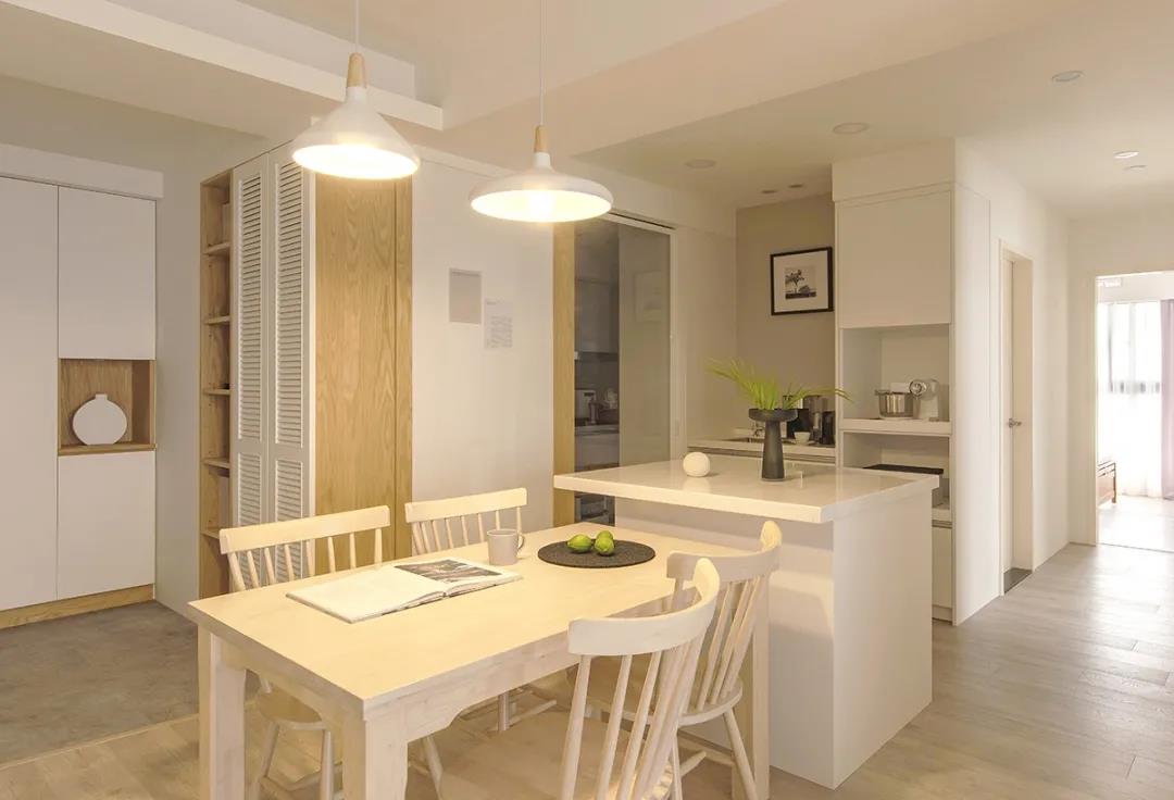如果你是那種西餐或烘焙的愛好者,想要有更多的操作空間,或者廚房用品特別多而餐廚空間又有盈余的話,不妨再多添入一個中島臺