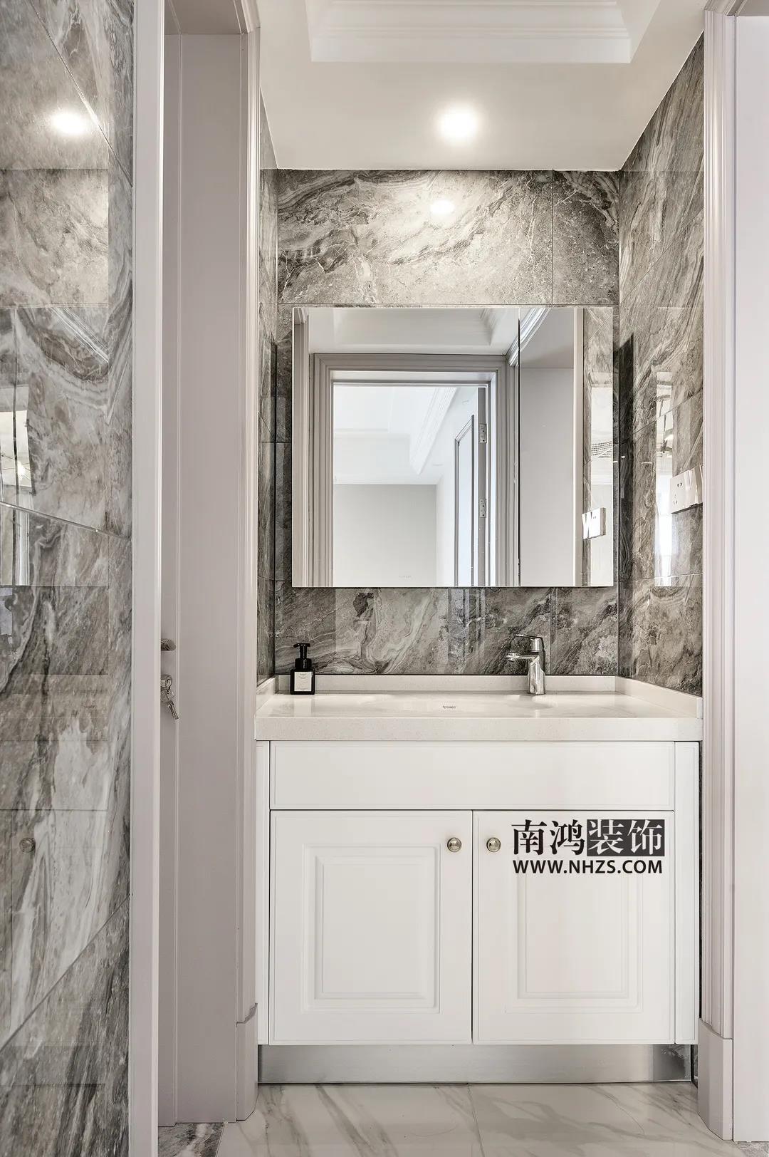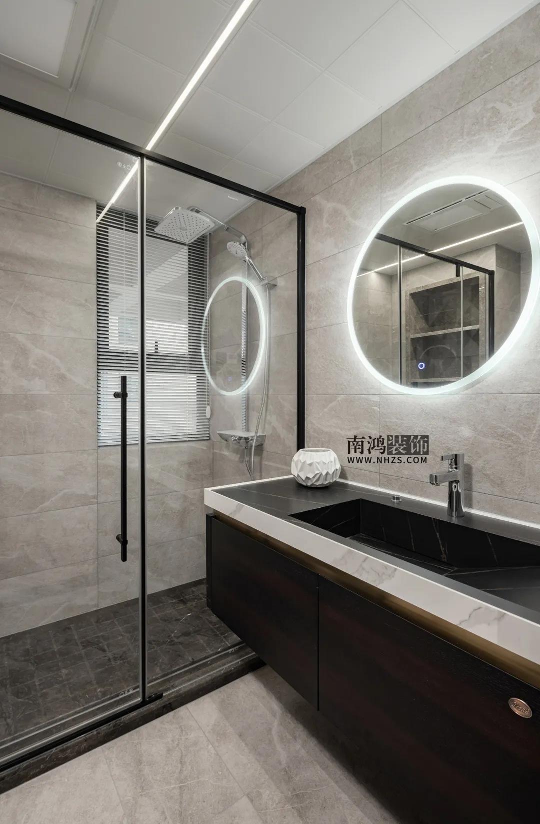 我們可以在洗漱區補充鏡前燈、鏡柜燈等輔助光源,避免衛生間因為只有一個主燈照明而產生的自上而下的陰影效果。
